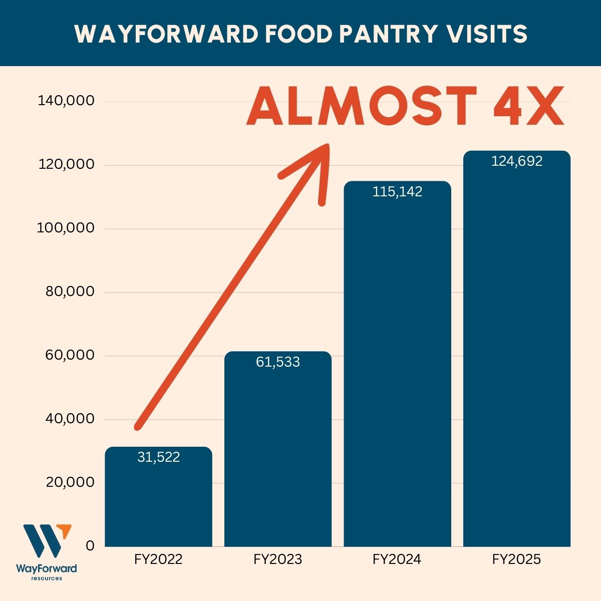 All month long, we’ll be challenging our community to help raise awareness about food insecurity while collecting as much food as possible for WayForward’s pantry. Mark your calendars and start making a plan to take action with your workplace, school, organization, family, friends, or neighbors.
